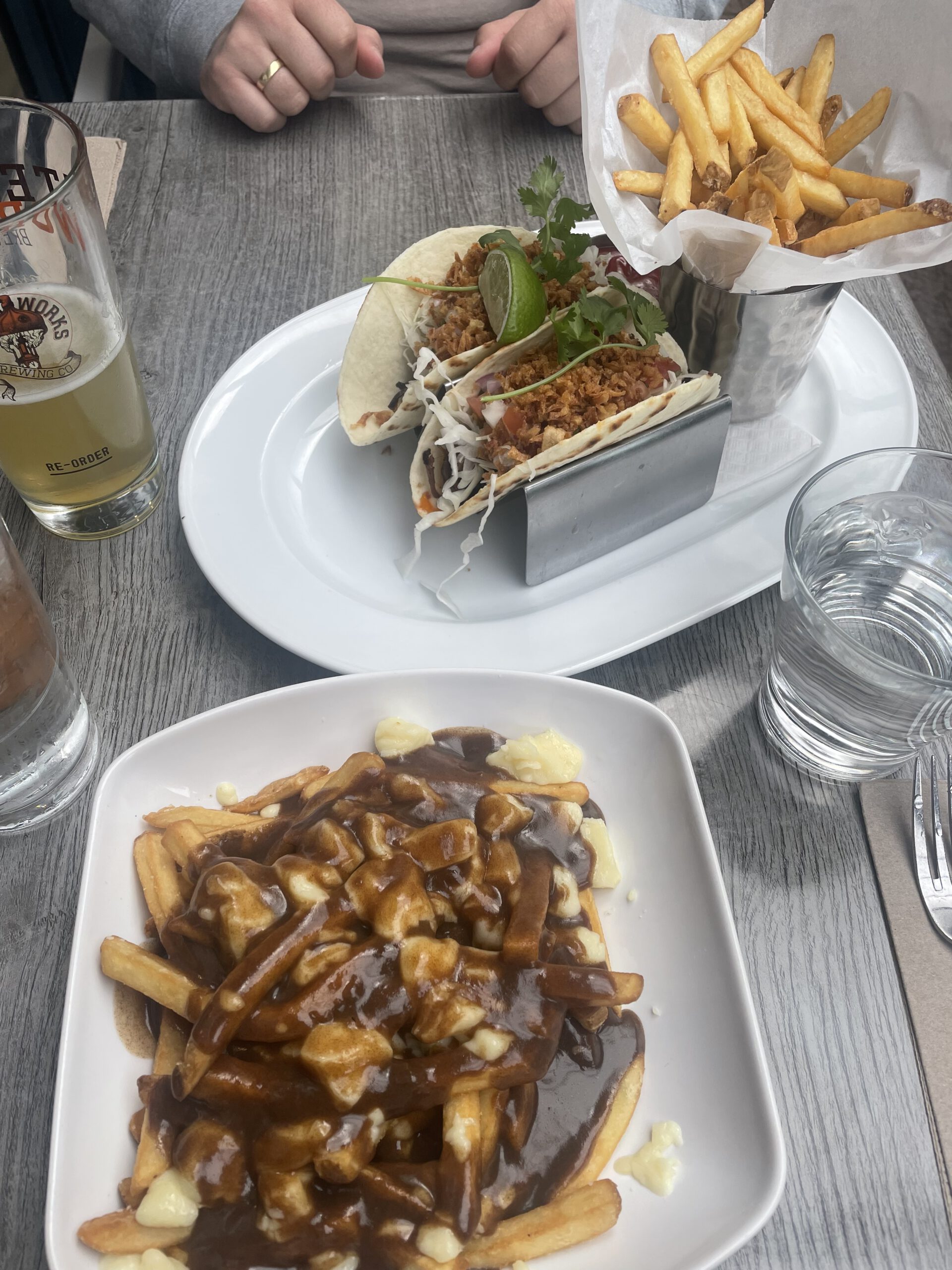 Hier haben wir auch die erste Poutine gegessen. Poutine ist ein kanadisches Fast-Food-Gericht, was es in verschiedensten Abwandlungen mittlerweile gibt. Die ganz traditionelle Poutine ist aber eigentlich Pommes mit Käse und Bratensauce.