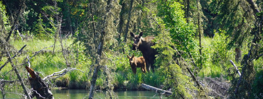 Auf dem Highway 1 hatten wir so viele Elche (hier in Amerika Mooses) gesehen. Highlight war eine Elchkuh mit ihrem Jungen. 🙂